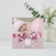 Convite de batismo e batizado de bebê menina com redemoinhos rosa elegante e laço rosa. Este convite de batismo e batizado em damasco rosa elegante é facilmente personalizado para o seu evento, basta adicionar sua foto, detalhes do evento, estilo de fonte, tamanho e cor da fonte e texto.