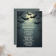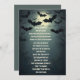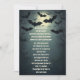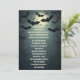 Um bando de morcegos voa através de uma lua de cheio neste convite de festa assustador do Dia das Bruxas. A parte de trás é simples, a mesma cinza verde que a frente.