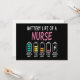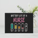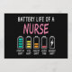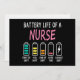 Humorous shift chart showing the battery life of a nurse with colorful levels from start to double shift. Ideal for nursing staff who enjoy relatable workplace humor.