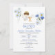 Este convite batismo para um bebê apresenta um anjo fofo e flores azuis, criando um design católico elegante. Espanhol/Espanhol: Celebra el Bautizo de tu hijo con esta invitación.