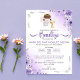Torne o batismo da sua garota memorável com este convite religioso católico. Ele apresenta um anjo feminino e flores roxas. Disponível em espanhol. Haz que el Bautizo de tu niña sea lindo con convite catation catuna angelita y flores púrpura.