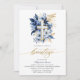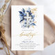 Convite para Batismo Espanhol Moderno e Elegante. Este convite maravilhosamente desenhado contém a palavra "Bautizo" em letras de ouro escritas à mão. O design é adornado com elegantes marinhos de cor d'água, flores azuis e douradas, complementadas por uma delicada cruz azul e dourada, todas colocadas sobre um fundo branco pristino. Personalize ainda mais o convite com seus detalhes de celebração para criar uma manutenção verdadeiramente única e memorável.