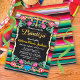 Colorida Fiesta Baptism mexicana/ bautizo e Convite de festas com fundo de tapete asteca. Apresenta papel picado brilhante inspirado em flores, sotaques dourados brilhantes e um fundo do tapete mexicano asteca.
