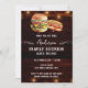Family Reunion Casual BBQ Party Invitations. Easy to personalize. All text is adjustable and easy to change for your own party needs. String lights rustic background elements. Fun Chalkboard swirls and flourishes. Watercolor hamburger and hotdog graphics. Invitations for him. Bar or backyard BBQ design. Any age, just change the text.