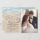 Nós fugimos do convite de celebração apresentando a margem azul do oceano, um coração esculpido na areia, uma foto do casal feliz, e um modelo recem casados que é fácil de personalizar.