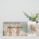 On one side, you'll find a stunning illustration of a serene beachscape that transports you to paradise. Flip it over, and you're met with an adorable couple embracing each other against the same picturesque backdrop. Every element is fully editable: names of the happy couple, date, location—everything can be personalized to make this invitation truly yours.