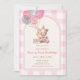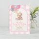 Convites Bear Balloon Pink Gingham Beary First Birthday