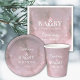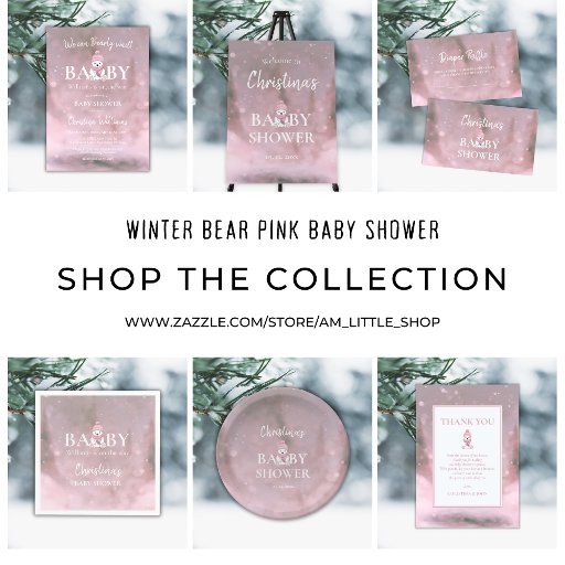 Este chá de fraldas de urso de inverno cor-de-rosa apresenta um adorável filhote de urso rodeado por um fundo de inverno de neve, e uma citação brincalhona "Nós podemos esperar muito". Este convite certamente adiciona um toque de capricho a qualquer chá de fraldas.
