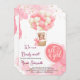 Bebê Urso Rosa Dourado Ar Quente Convite para Chá de fraldas de Balões, Perfeito para chá de fraldas de menina! Lindas cores pastéis com massa de aquarela.