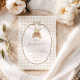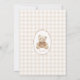 Este doce convite para chás de fraldas gingham apresenta um ursinho marrom fofinho e tons neutros leves — perfeito para um tema de espera antecipada. Explore a coleção de cheios para coordenar placas, jogos e suprimentos de festas!
