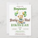 Ursinho de pelúcia, primeira festa de aniversário, sage verde e ouro castanho, sprinkles festa de aniversário convite para descarregamento instantâneo, ursinho de pelúcia bonitinho vestido com camisa e uma gravata arco segurando balões verdes e dourados com a moderna cor d'água.