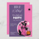 Beba bruxas na festa do Dia das Bruxas modelo convite para download instantâneo, groovy retro com cores mudas cor rosa e roxo uma bruxa com um copo, pote e gato