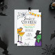 Beba o convite do Dia das Bruxas com teia de aranhas, coquetéis de martini de milho doce, uma bruxa malvada, um banner de milho doce, e as aranhas lê Bebidas Bruxas. Personalizado com todos os detalhes do seu partido.