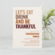 Celebre a temporada com este Bebida Comida e Seja um Janto de Ação de Amizade Feliz. Projetado com ousada tipografia moderna em tons quentes de outono, este convite minimalista captura perfeitamente o espírito de gratidão e união. Ideal para encontros de Dia de Amizade ou festas de Ação de Graças, ou copos de outono, este modelo editável é fácil de personalizar para a sua celebração festiva.