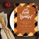 Este convite moderno de Ação de Graças apresenta um fundo de xadrez de búfalos de cor de outono em castanho e preto com o ditado "Coma, Beba, e Seja Agradável" em letra de na moda. É a maneira perfeita de convidar sua família e amigos para celebrar o feriado com você.
