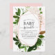 A Greenery Botanical Watercolor e Rosa Dourado - Blush Pink Geométrico Primavera Baby Sprinkle Invices em fundo branco - inclui uma bela e elegante tipografia de escrita com folhas botânicas modernas e verde-verde para a celebração da "Mãe a Ser" especial.