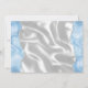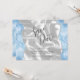 O lado deste elegante casamento moderno Salve o Cartão de Data apresenta um doce pastel azul aquarela agate borda com falso brilho prateado. O texto personalizável combina escrita manual, fontes sans serif e itálicas em cinzas de carvão em uma imagem de fundo de seda branca. O agate azul e a design de seda branca são repetidos na parte traseira da placa.