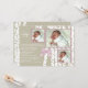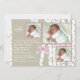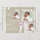 Birch tree Christening Invitation acentuou-se em rosa com espaço para três fotos do seu bebê e muito espaço para texto nas costas para texto adicional. arco rosa bonito e árvores brancas de pássaros fazem um doce anúncio de nascimento também.