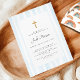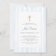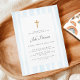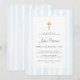 Um convite de batismo de cor azul-aquática, mas elegante.