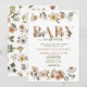 Crie o anúncio de bebê perfeito para menina + convite de chá de bebê com este design moderno tema floral Boho Baby in Bloom, apresentando flores pintadas à mão decorando a palavra 'bebê'. O verso do cartão apresenta uma ilustração floral correspondente. Contate o designer para produtos correspondentes. Copyright Elegant Invites, todos os direitos reservados.