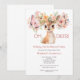 Adorável e doce veado de bebê com chá de fraldas de borboletas. Flores cor-de-rosa e amarelas e borboletas rosa. Todos os campos são editáveis.