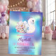 Convites Bebê Cachorro Flor Azul Holográfico Aniversário