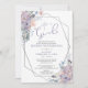 Chá de fraldas de menina elegante com belos buquês florais de flor silvestre de aquarela em tons de roxo, violeta, lilás, pincel, azul empoeirado e verduras acentuadas com um quadro geométrico de cinza prateada com o título IT'S A GIRL na moderna e elegante tipografia de roteiro. ASSISTÊNCIA: para obter ajuda com a modificação/personalização do design, alteração de cor, transferência do design para outro produto ou, se você quiser coordenar itens, entre em contato com o designer ANTES DE ENCOMENDAR através da guia MENSAGEM de bate-papo Zazzle ou por e-mail em makeitaboutyoustore@gmail.com.