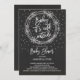Chá de fraldas moderno em floco de neve com caligrafia tipográfica em um popular fundo negro de quadro negro. Perfeito para um chá de fraldas de meninas, chá de fraldas de meninos ou chá de fraldas neutro em gênero.