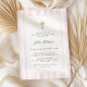 O convite para batismo é elegante, cor-de-água rosa.