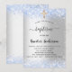 Para um convite elegante e batismo. Um fundo de olhar mal prateado. Decorado com confete azul claro e uma cruz ouro. Personalize e adicione um nome e detalhes. Script de estilo com letra moderna