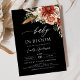Celebre o seu pequeno com o Black Wildflower Baby no Bloom Autumn Chá de fraldas Invitation. Apresentando um fundo negro ousado adornado com delicadas flores silvestres inspiradas no outono, esta elegante e moderna design é perfeita para um chá de fraldas confortável e sazonal. O contraste entre os florais de queda quente e o fundo escuro adiciona um toque chic e sofisticado, fazer ideal para os pais que amam uma estética única e na moda.