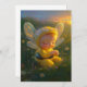 Uma ilustração pastoral que captura a alegria pura de um bebê vestido com uma roupa de mel encantadora, sentado num campo de flores silvestres beijado pelo sol.