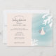 Bebê de tubarão doce embalado num cobertor e balançando suavemente nas ondas de turquesa.