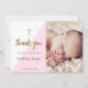 Convites Bebê Dourada rosa Batismo agradecido