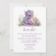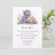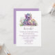 Adorável gênero de amor à fantasia revela convite de festas, com belos gráficos de um dragão bebê roxo sentado em flores, contra um fundo branco. Personalize o texto roxo colorido para o seu próximo evento.
