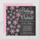 Um convite temático do chá de fraldas do inverno adorável. Caracterizando uma pia batismal do roteiro com a frase "bebê é parte externa fria", com os flocos de neve cor-de-rosa e brancos em um design do fundo do quadro. Moderno e bonito para um chá de fraldas da menina.