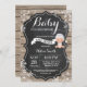 Bebê é o convite do Chá de fraldas russo de inverno. Floco de neve branco. Fundo do Quadro de Madeira Rústica. Campo de Vintage Retro Barn. Convite para Chás de fraldas de Menino ou Menina. Convite para Chá de fraldas de férias de inverno. Para mais personalização, clique no botão "Personalizar" e use nossa ferramenta de design para modificar este modelo.