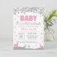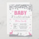 Bebê é Frio Fora do Chá de fraldas da Garota dos Veados de inverno.Convite De Chá de fraldas. Cinza Floco de Neve. Chá de fraldas De Feriado De Inverno Convide. Fundo Branco.