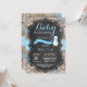 Bebê é Frio Fora da Rússia. Chá de fraldas de Pinguim de inverno. Floco de neve azul. Fundo do Quadro de Madeira Rústica. Campo de Vintage Retro Barn. Convite para Chás de fraldas. Convite para Chá de fraldas de férias de inverno. Flocos de neve azuis e brancos. Para mais personalização, clique no botão "Personalizar" e use nossa ferramenta de design para modificar este modelo.
