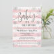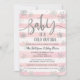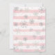 Listras brancas e cor-de-rosa com flocos de neve com brilho prateado convite para chá de fraldas para a menina chá de Maravilha de inverno.