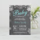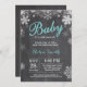 Bebê é o convite do Chá de fraldas Frio Fora do Inverno. Floco de Neve Branco e Aqua. Convite para Chás de fraldas de Menino ou Menina. Convite para Chá de fraldas de férias de inverno. Fundo Chalkboard. Para mais personalização, clique no botão "Personalizar" e use nossa ferramenta de design para modificar este modelo.