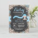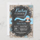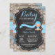 Bebê é o convite do Chá de fraldas russo de inverno. Floco de neve azul. Fundo do Quadro de Madeira Rústica. Campo de Vintage Retro Barn. Convite para Chás de fraldas. Convite para Chá de fraldas de férias de inverno. Flocos de neve azuis e brancos. Para mais personalização, clique no botão "Personalizar" e use nossa ferramenta de design para modificar este modelo.