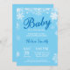 Bebê é o convite do Chá de fraldas Frio Fora do Inverno. Floco de neve azul e branco. Convite para Chás de fraldas. Convite para Chá de fraldas de férias de inverno. Fundo Azul Bebê. Para mais personalização, clique no botão "Personalizar" e use nossa ferramenta de design para modificar este modelo.