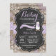 Bebê é Frio Fora da Rússia. Chá de fraldas de Pinguim de inverno. Floco de neve roxo. Fundo do Quadro de Madeira Rústica. Campo de Vintage Retro Barn Convite para Chás de fraldas. Convite para Chá de fraldas de férias de inverno. Flocos de neve azuis e brancos. Para mais personalização, clique no botão "Personalizar" e use nossa ferramenta de design para modificar este modelo.