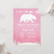 Bebê é frio fora do Chá de fraldas do Urso Polar de inverno. Chá de fraldas. Floco de neve branco e rosa. Convite para Chá de fraldas de férias de inverno. Fundo Rosa. Para mais personalização, clique no botão "Personalizar" e use nossa ferramenta de design para modificar este modelo.