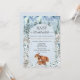 Design de chá de fraldas de inverno moderno e neutro para o gênero "bebê está frio lá fora" em letras elegantes e na cor d'água na natureza de inverno com árvores de abeto, montanhas na neve, e mamães bonitinhas e raposa para bebês.