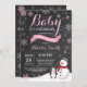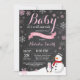 O Bebê É Frio Fora Do Convite Para Chá de fraldas Da Rapariga De inverno. Convite para Chás de fraldas. Convite para Chá de fraldas de férias de inverno. Flocos de neve rosa e branco. Snowman e Chalkboard Background Para mais personalização, clique no botão "Personalizar" e use nossa ferramenta de design para modificar este modelo.