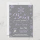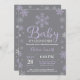 Bebê É Frio Fora Do Convite Para Chá de fraldas De Inverno. Convite para Chás de fraldas. Convite para Chá de fraldas de férias de inverno. Flocos de neve roxos e brancos. Fundo das cinzas. Para mais personalização, clique no botão "Personalizar" e use nossa ferramenta de design para modificar este modelo.