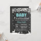 Bebê é Frio Fora do Chá de fraldas de inverno. Bebê está frio fora do Convite ao Chá de fraldas. Floco de Neve Branco e Aqua. Convite para Chás de fraldas de Menino ou Menina. Convite para Chá de fraldas de férias de inverno. Fundo Chalkboard. Preto e Branco. Para mais personalização, clique no botão "Personalizar" e use nossa ferramenta de design para modificar este modelo.