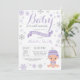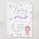 O Bebê É Frio Fora Do Convite Para Chá de fraldas Da Rapariga De inverno. Convite para Chás de fraldas. Convite para Chá de fraldas de férias de inverno. Flocos de neve roxos e Cinzas. Fundo Branco. Para mais personalização, clique no botão "Personalizar" e use nossa ferramenta de design para modificar este modelo.